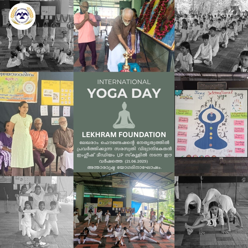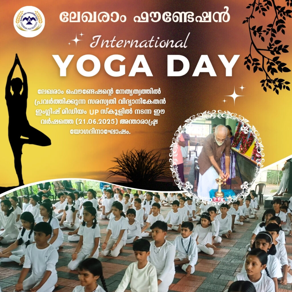 • ലേഖരാം ഫൌണ്ടേഷന്റെ നേതൃത്വത്തിൽ പ്രവർത്തിക്കുന്ന സരസ്വതി വിദ്യാനികേതൻ ഇംഗ്ലീഷ് മീഡിയം UP സ്കൂളിൽ നടന്ന ഈ വർഷത്തെ (21.06.2025) അന്താരാഷ്ട്ര യോഗദിനാഘോഷം.