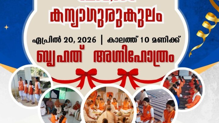 The Lekhram Kanya Gurukulam ,Vellinezhi, Palakkad district of Kerala, is organizing a FREE workshop named UTHISHTA 2026 ARYA VEERANGANA DAL SHIBIRAM for girl students from 22nd April 2026, 9 AM to 24th April 2026 4 PM uder the leadership of Smt. Vratika Arya ji (Pradhan Sanchalika, Sarvadeshik Arya Veerangana Dal) and Sushri Divyashikha Arya ji…